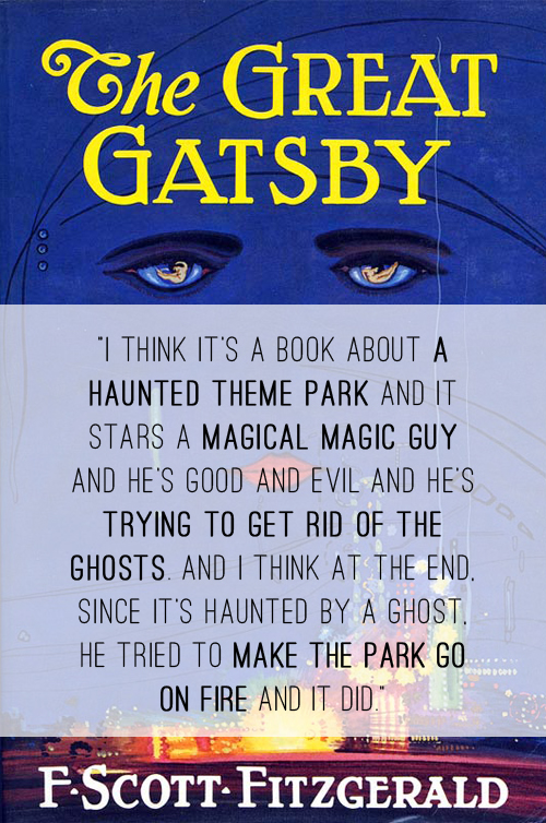 How much would you rather watch that Great Gatsby movie directed by Baz Luhrmann if the plot were about a magical guy who sets a haunted amusement park on fire to exterminate the ghosts? [via tobeshelved]